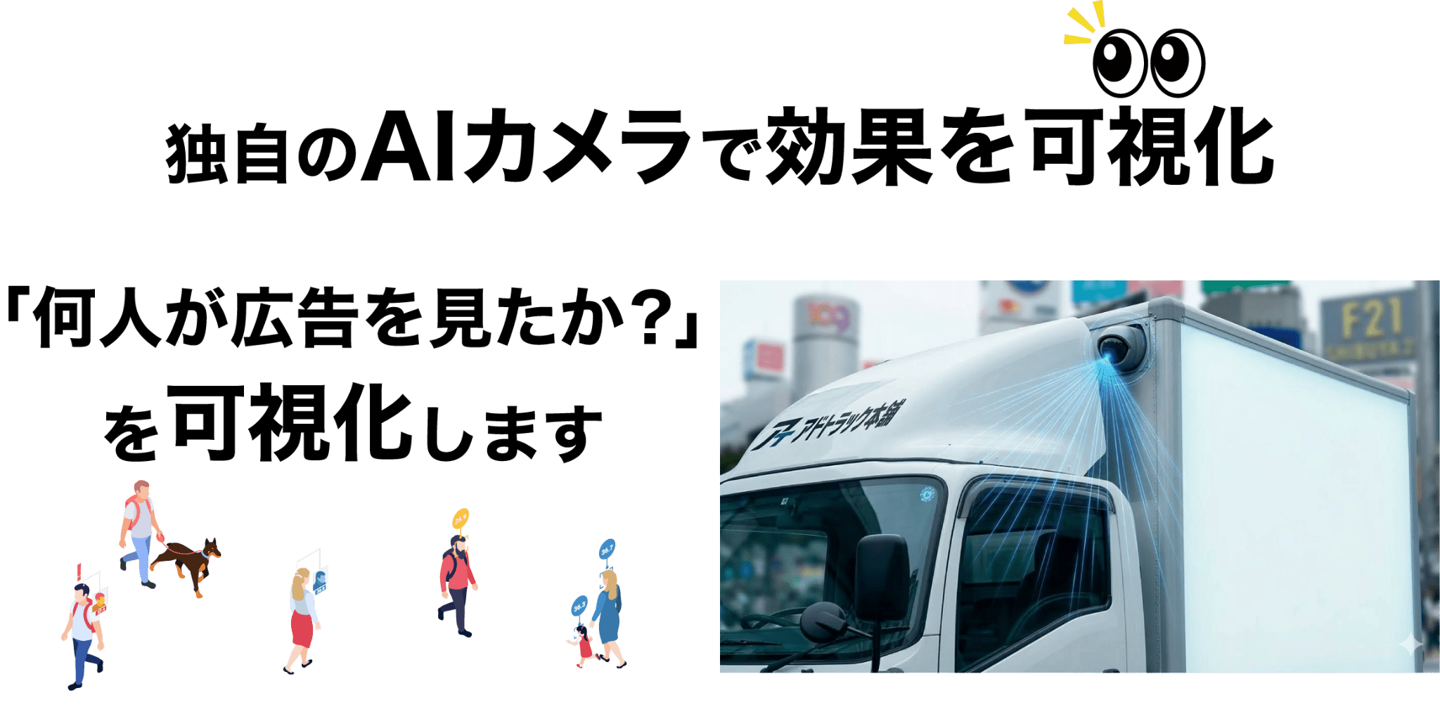 アドトラックをはじめとする従来の屋外広告には、「実際に何人に見られたのか効果測定ができず、費用対効果の検証がしづらい」という大きな課題がありました。
